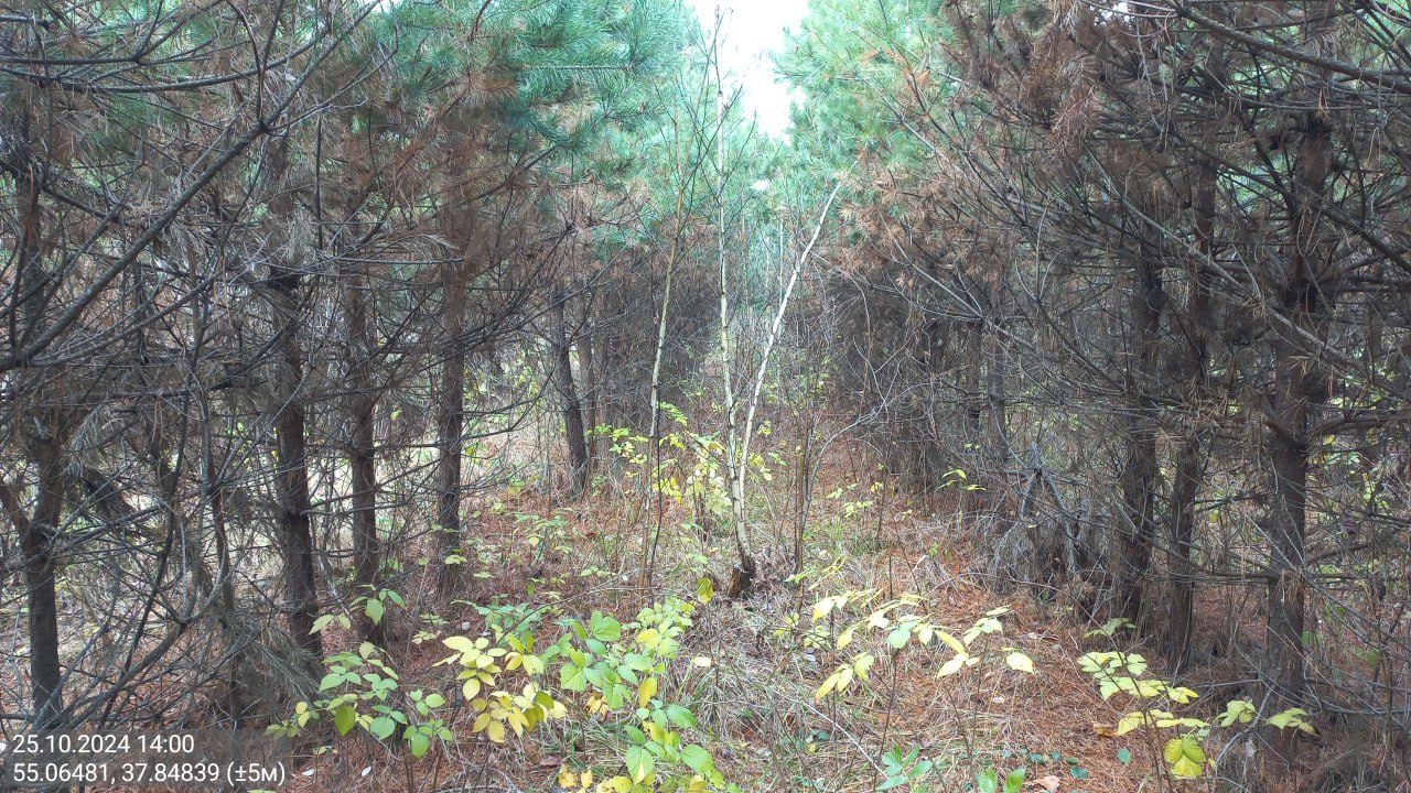 В ходе обследования отмечены многочисленные случаи повреждения лесных культур сосны и подроста дуба естественного происхождения лосем. К сожалению, задача учета таких повреждений в начале работы не была поставлена, поэтому количественных данных по итогам работ 2024 года нет, но на уровне экспертной оценки по их результатам долю участков с теми или иными повреждениями можно оценить примерно в 50%, причем в отдельных случаях повреждение лосем стало одной из причин гибели лесных культур. В нескольких случаях отмечены также повреждения стволиков молодых сосен неустановленными более мелкими копытными.