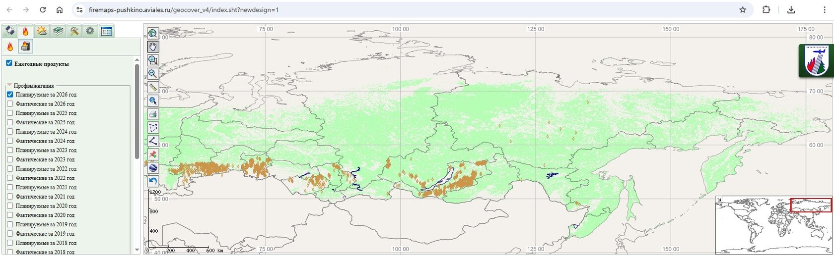 Global Wildfire Information System. Еще одна англоязычная глобальная информационная система по ландшафтным пожарам, основанная в целом на тех же данных, что отображены в NASA Worldview.