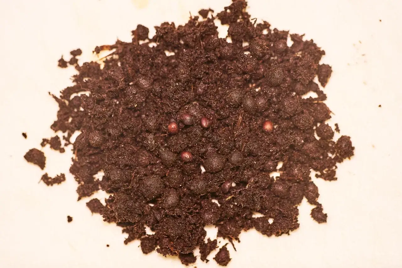На всех приведенных в этой статье фотографиях - небольшие количества семян с субстратом (примерно столовая ложка с горкой в каждом случае), которые мы временно достали для съемки, а потом вернули в холодильник к остальным.
