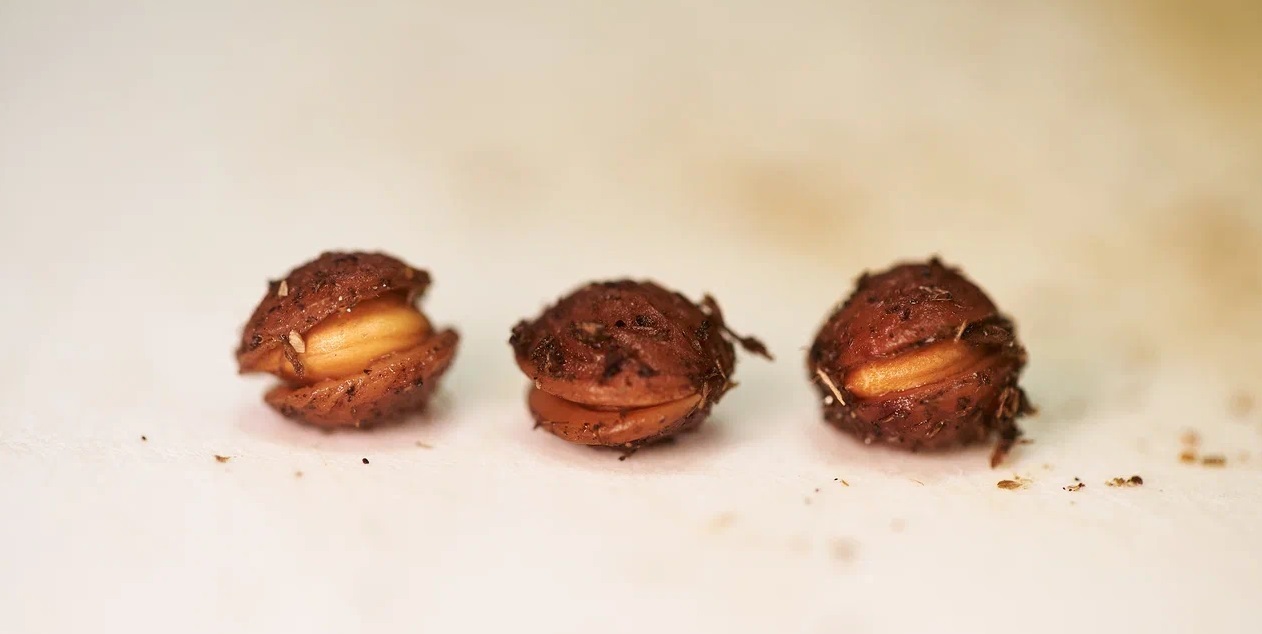 Терн, или слива колючая - местный, но довольно редкий в Калужской области, кустарник. Требует длительной холодной (при 0 - +5°С) стратификации в течение примерно полугода, условно-одноэтапной (перед закладкой на стратификацию семена желательно несколько дней выдержать в регулярно меняемой воде при примерно комнатной температуре). Три с половиной месяца холодной стратификации уже прошли. Небольшая часть семян, лежавших в торфяной смеси, начала раскрываться - это уже такое состояние, при котором, если семя живое, оно точно прорастет при подходящей температуре. Для эксперимента часть семян была заложена на стратификацию в смеси с вермикулитом (примерно на неделю позднее, чем в торфяной смеси) - в этой партии терна набухших и раскрывшихся еще нет.